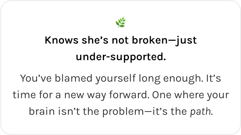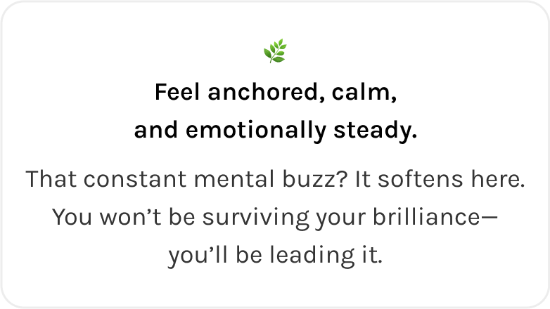 Finally feel seen in a space where your brain isn’t too much, it’s just understood. You’ll show up more confidently everywhere else because of how held you feel here.