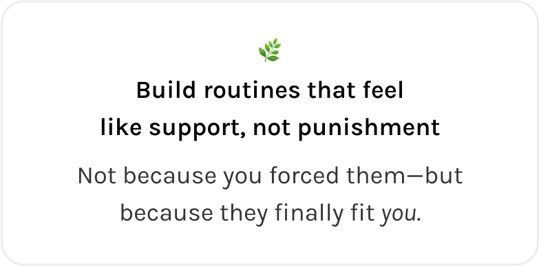 Finally build routines that fit you, trust yourself to follow through, and create steady, powerful momentum from the inside out.