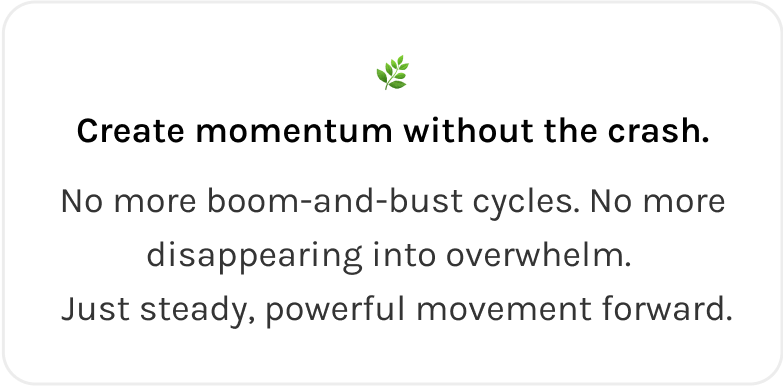 You’ll build real-life momentum without burning out. Every day isn’t perfect, but you’re showing up differently. And that changes everything.